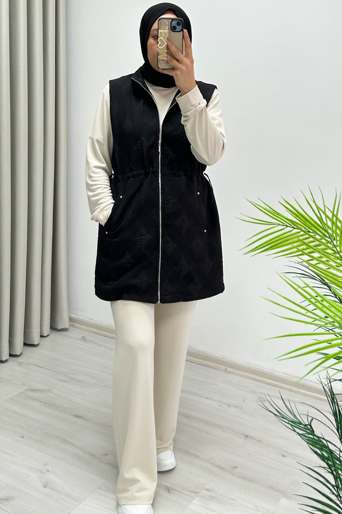 Mevsimlik Full Fermuar Kapamalı Ayarlanabilir Bel Büzme Detaylı Astarlı Kapitone Yelek