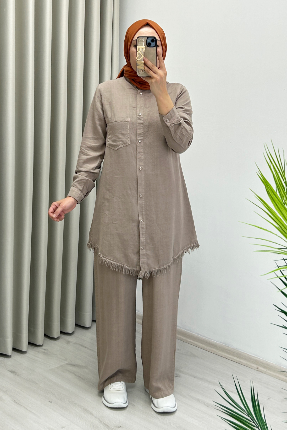 Premium Kumaş Çıtçıt Düğme Detaylı Gömlek Pantolon İkili Tesettür Takım