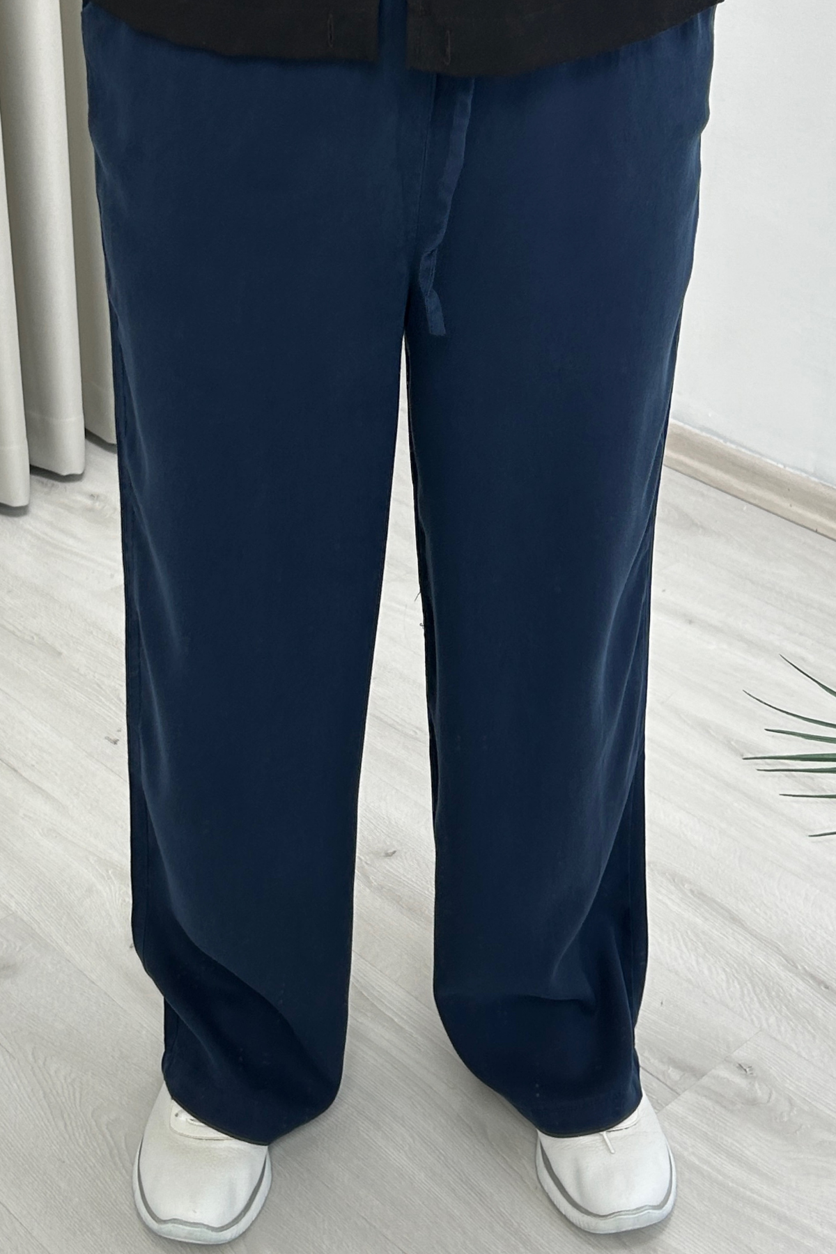 Yeni Sezon Premium Kumaş Yumuşak Dokulu Dökümlü Kadın Pantolon Lacivert