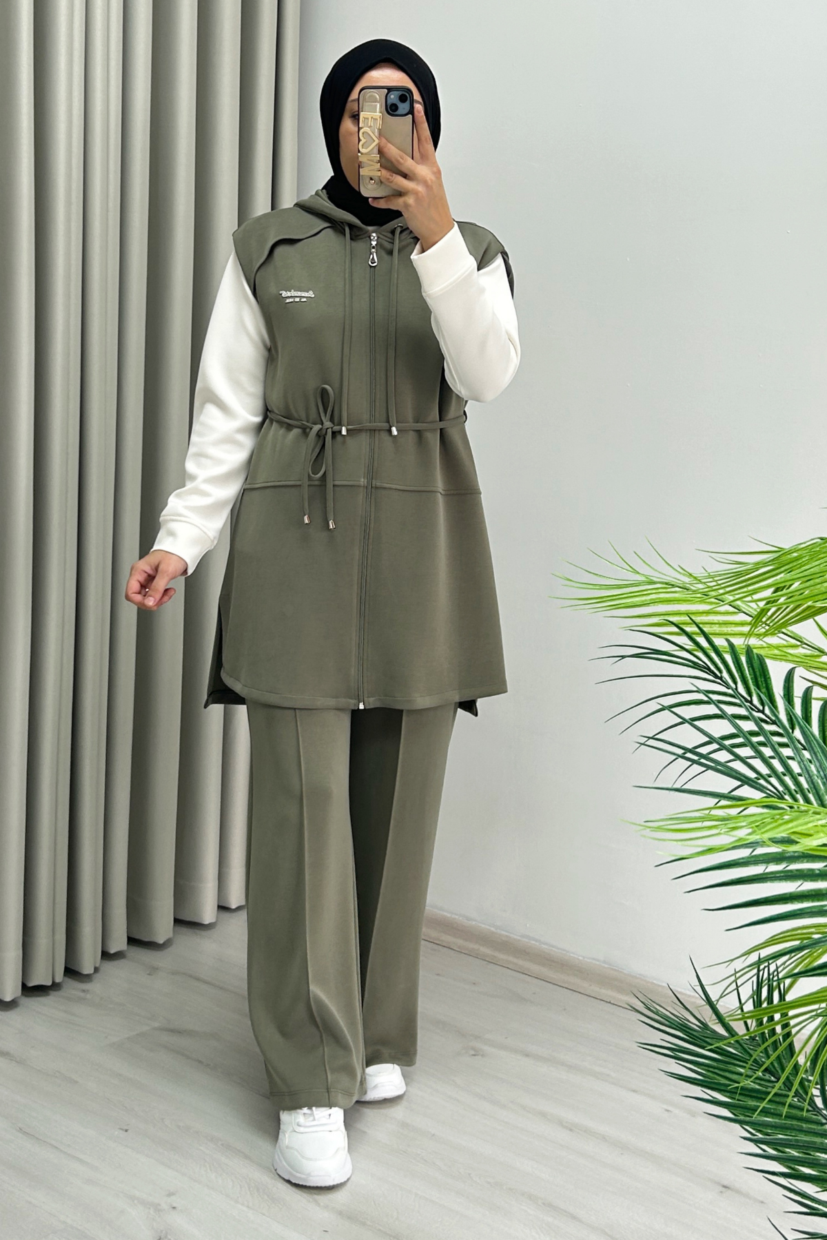Yeni Sezon Tripen Premium Kalite Kapüşonlu Yelekli Tesettür Üçlü Takım